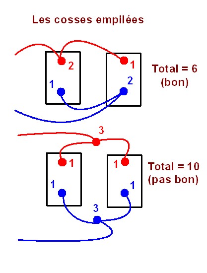 On voit sur la figure que dans le cas du mauvais branchement, la quatrième batteries verra 6 branches de connexion de plus que la première batterie. Les 2ème, 3ème et 4ème batteries subiront une petite chute de tension croissante supplémentaire par rapport à la 1ère. A chaque cycle de charge et de décharge un petit décalage de charge s’accumulera, et après un certain nombre de cycles la batterie d’une des extrémités sera très usée par rapport à celle de l’autre extrémité.