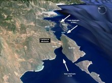- Kekova SW, prolongement de Kekova road vers l’Est, et impasse aujourd’hui fermée par le comblement alluvionnaire, entre Pölemos Bükü et Aperlaï.