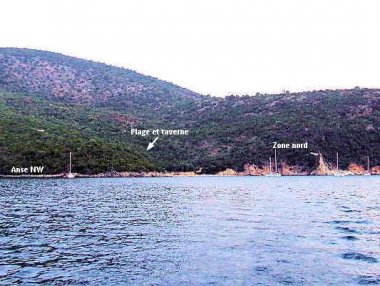 - Devant la plage, et sa taverne, au NW mais peu de place, avec des fonds de 3 Ã 5 m.