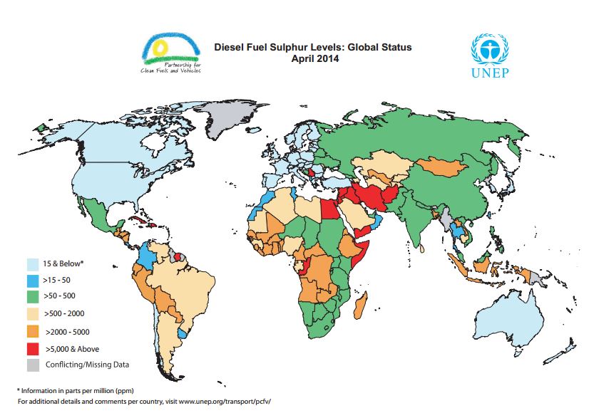 Les problèmes se posent de manière aiguë dans les pays qui ont des taux de soufre se comptant en %. On notera que les sites que j’indiquais correspondent à des huiles pour moteurs de gros navires, où les fuels lourds peuvent (encore...) avoir 3 à 5 % de soufre ! Il faut savoir que certains bruts, par exemple du Moyen Orient, ont des taux de soufre naturels de 4 à 5 %, qu’on retrouve bien sûr si pas de traitement !