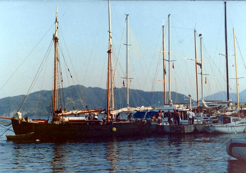 Avec les copains nous allions chez Memmet. Nous aimions ce « restoran » note [1] pour sa qualité et son ambiance. Il y avait ce soir-là Jacques et son épouse connus depuis notre première escale à Corfou, ainsi que Jack le somptueux qui se croyait propriétaire d’un beau navire lorsque les patrons n’étaient pas à bord, car il n’était que skipper… mais recevait de belles passagères de passage... sur les quais. Il était généreux ! Il y avait aussi Marc un violoneux de l’orchestre de Paris, Vasymou, Nounou, puis d’autres nouvelles connaissances dont un Américain possesseur d’un « grand-banks » un puissant yacht à moteur renommé et bien connu, qui occupait sa retraite en sillonnant la Méditerranée dans tous ses recoins magnifiques. Le jour suivant notre arrivée au chantier, dans une des somptueuses et nombreuses cuites qu’il prenait en bonne compagnie, ce Yankee m’avoua avoir été amiral, je le regardai d’un autre œil, mais continuai à la traiter comme un bon copain que je retrouverais fatalement lors d’autres escales en Turquie, du moins je le pensais.