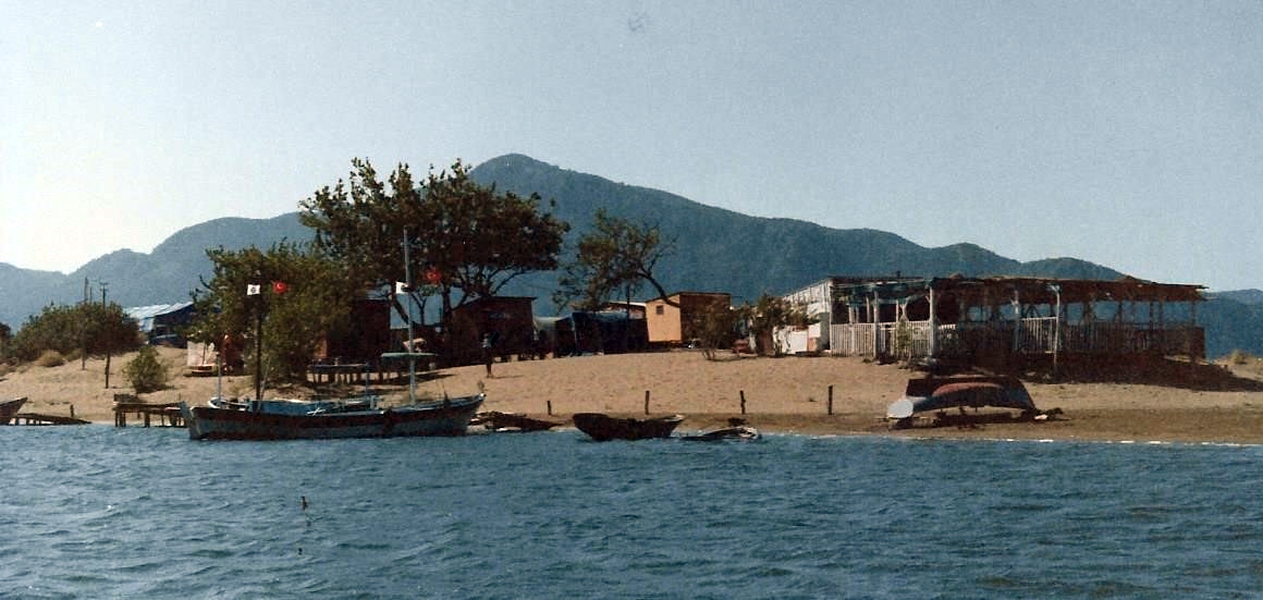 A ce propos, lorsque je demandai à l’un des sympathiques patrons d’un caïque : « Vous ne hissez jamais vos voiles bien ferlées ? »… Il me répondit : « Jamais… c’est trop dangereux ! » La fréquentation de cette baie s’expliquait par l’embouchure un peu plus loin, mais sans abri, de la rivière menant à Dalyan une cité d’importance moyenne.