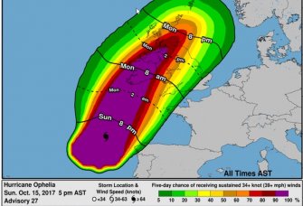 Le 9 octobre 2017, le National Hurricane Center, département de la NOAA chargé de la surveillance des ouragans, déclenchait une alerte sur l’émergence d’un phénomène cyclonique au centre de l’atlantique. Après avoir hésité et entamé une route classique vers l’ouest, il se dirigeait, cap au NE vers les côtes européennes, ciblant le SE irlandais.