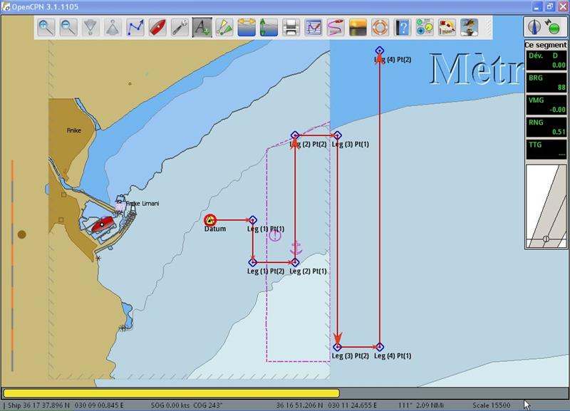 - Par défaut, OpenCPN activera le WP le plus proche de la position du bateau, GPS activé