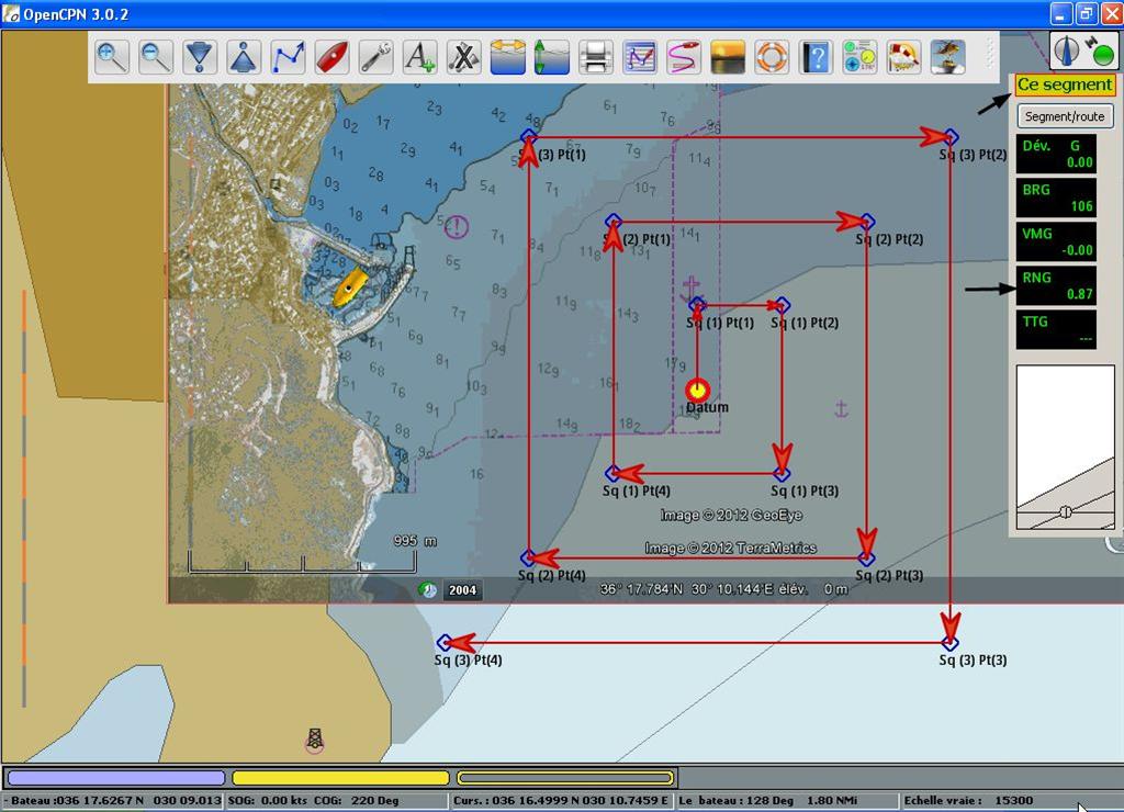 Parmi les plugins , celui d’OpenCPN affichable directement depuis l’écran. Après avoir testé SAR-Pattern de Andres et Latchodrom http://www.plaisance-pratique.com/l... et SAR-0.7 d’OpenCPN, je perçois que SAR-0.7 d’OpenCPN est une version adaptée à la plaisance de SRA-Pattern, mais peu soucieuses des normes IAMSAR que SAR-Pattern s’efforce de respecter.. Il est donc recommandé de prendre en compte qu’il s’agit d’une approche amateur du SAR. Les utilisateurs devront l’utiliser en connaissance de cause. Ce n’est pas un logiciel SAR homologué : http://www.cruisersforum.com/forums...