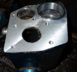 Ensuite, sur une fraiseuse, j’ai surfacé le plan de joint et réalésé la porté d’étanchéité du faisceau, la cote de réparation est plus grande de 5mm par rapport à l’alésage d’origine. L’opération qui demande le plus de précision est le centrage du nouvel alésage par rapport aux deux autres portées encore intactes à l’entré et au milieu du corps. Ces opérations doivent également pouvoir être réalisés sur un tour.