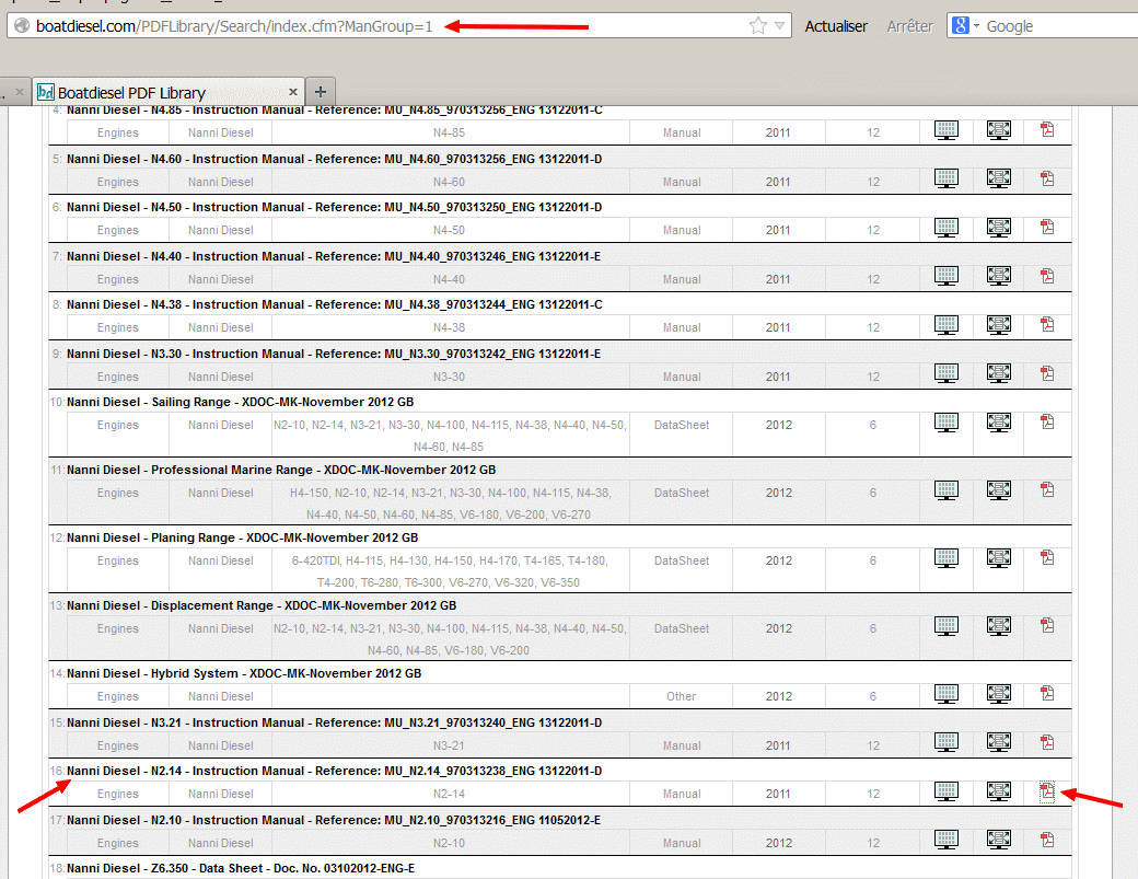 En accès public, on ne trouve que les notices de conduite, comme celle-ci pour le 2N14 : http://www.nannidiesel.com/images/s...