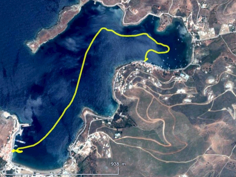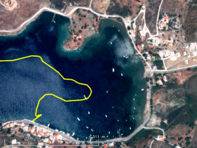 - Ormos Vourkari A l’Est, une zone mouillage bien protégée, et assez proche du port de Vourkari, mais très encombrée de corps morts des locaux (souvent des athéniens en vacances)