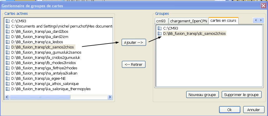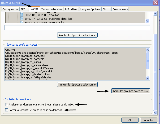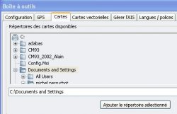 - La deuxième solution à été exposée Préparer les répertoires de cartographie et consiste à créer directement dans le répertoire Windows, une rubrique (ou répertoire, c’est la même chose), destinée à recevoir les cartes utilisables pour le programme de navigation en cours. Dans ce cas de figure, on ne charge qu’un seul répertoire depuis OpenCPN, celui là.
